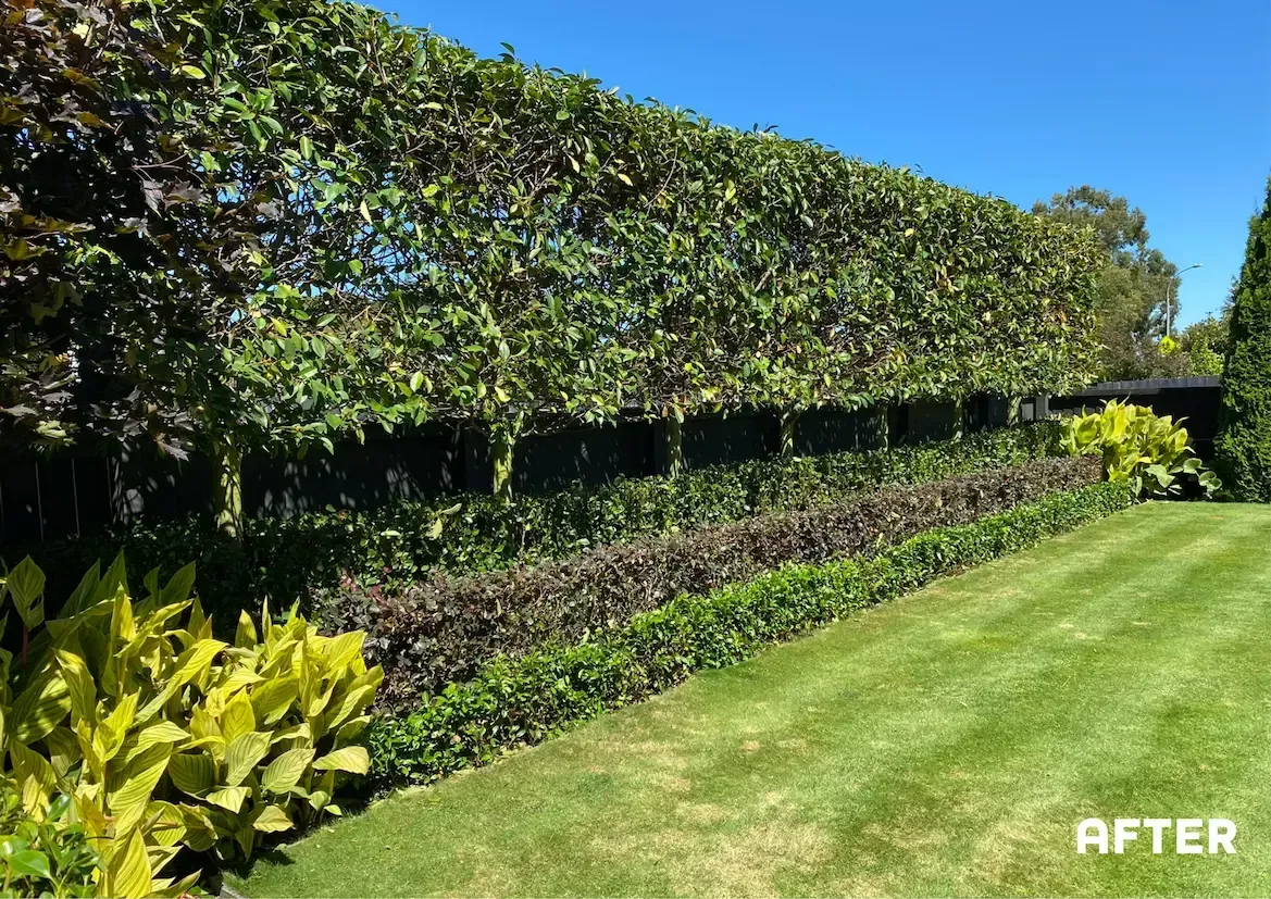 A pleached hedge is a “hedge on sticks”. Pleaching involves training trees to form a flat, connected screen above a clear stem. It's an elegant solution for creating privacy without sacrificing space, ideal for urban gardens in Christchurch and beyond. Want to block out your neighbours? This is the perfect solution!